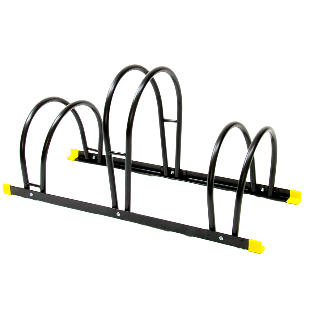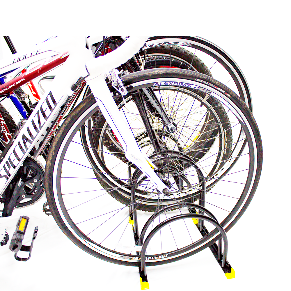 Estacionamiento resistente y de fácil instalación con perforaciones para ser fijado al piso si así se requiere. Le ayuda a mantener sus bicicletas en buen estado evitando al mismo tiempo