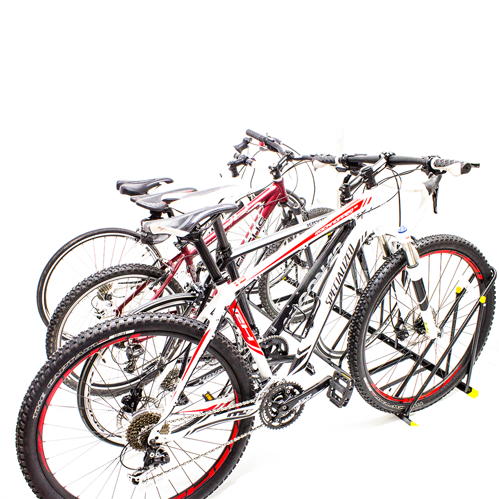 Estacionamiento resistente y de fácil instalación con perforaciones para ser fijado al piso si así se requiere. Le ayuda a mantener sus bicicletas en buen estado evitando al mismo tiempo