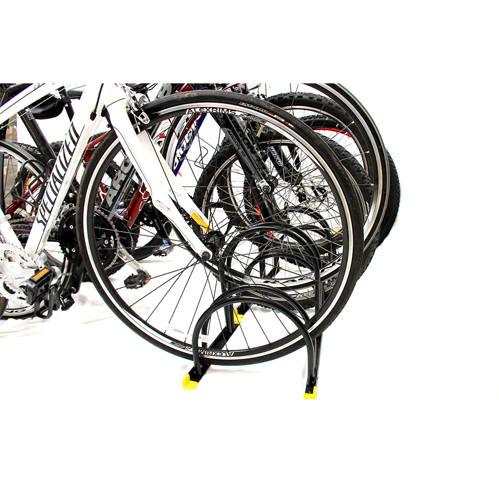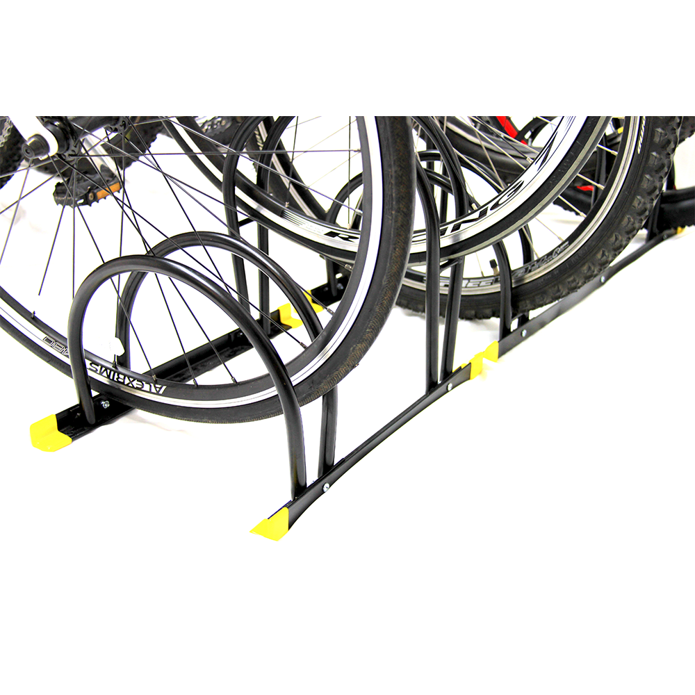 Estacionamiento resistente y de fácil instalación con perforaciones para ser fijado al piso si así se requiere. Le ayuda a mantener sus bicicletas en buen estado evitando al mismo tiempo