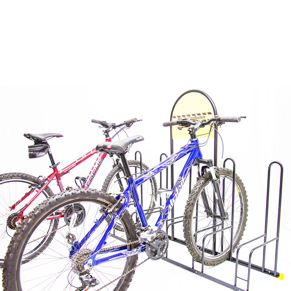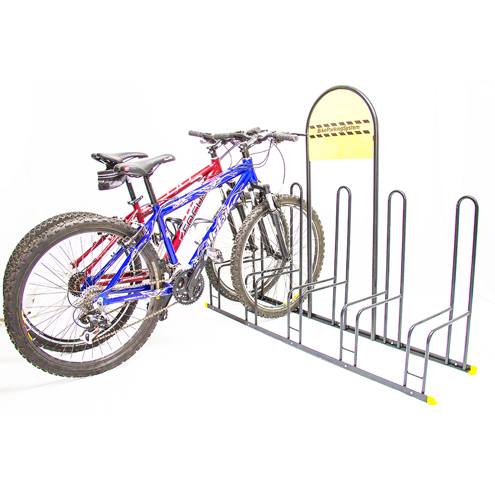 Estacionamiento resistente y de fácil instalación con perforaciones para ser fijado al piso si así se requiere. Le ayuda a mantener sus bicicletas en buen estado evitando al mismo tiempo que estorben o se maltraten. Fabricados en acero y pintados con pintura epóxica altamente resistente a las rayaduras y a la corrosión. Cuenta con un espacio definido para publicitar su propia marca. |
